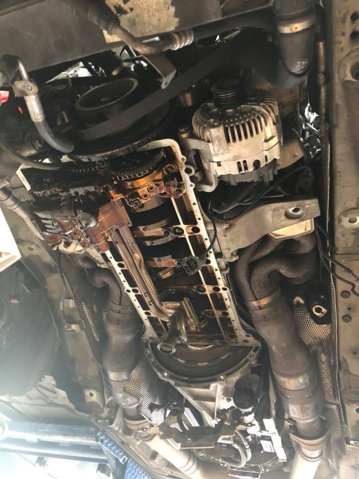 Le remplacement des coussinets de bielle nécessite des connaissances et des compétences mécaniques, un espace de travail propre, et plusieurs outils spécifiques. Le mode opératoire que nous recommandons est de laisser le moteur dans la voiture, mais de retirer le berceau avant. Le moteur doit être supporté par le haut. Le retrait du berceau avant implique de démonter les bras de suspension et de direction.