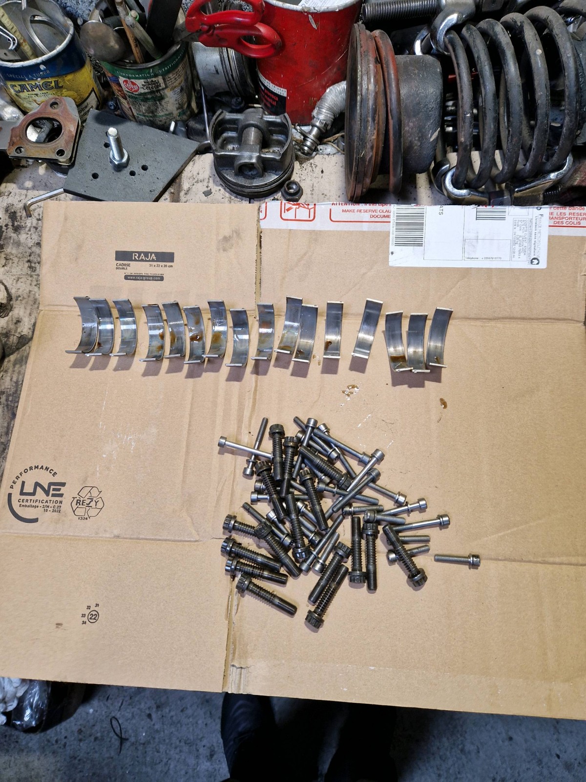 La contrepartie de ce formidable moteur v8 atmosphérique est l'entretien qui doit impérativement être fait en date est kilométrage donné par le constructeur, pour celle ci par exemple nous avons remplacé les coussinets de bielles fortement préconiser à 80000klm !